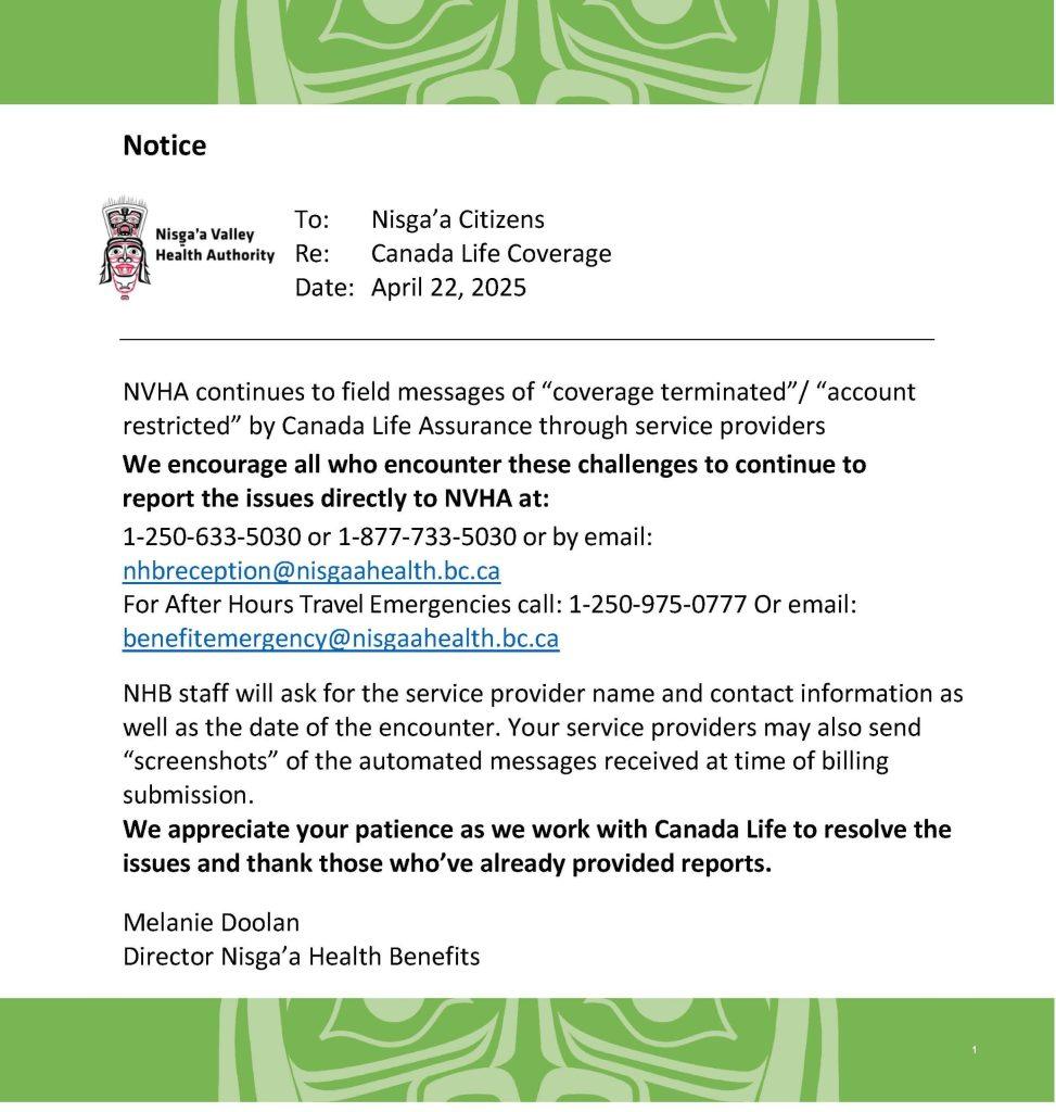 Notice: Nisga’a Health Benefits Department – Vision Care Providers