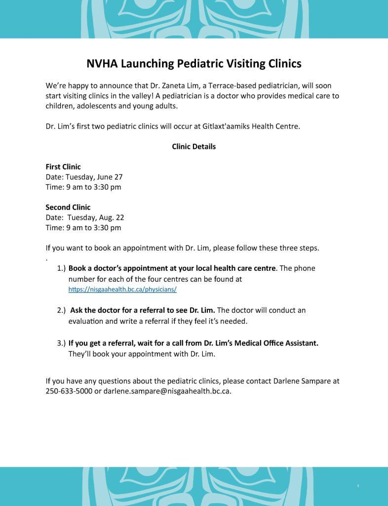 NVHA Launching Pediatric Visiting Clinics