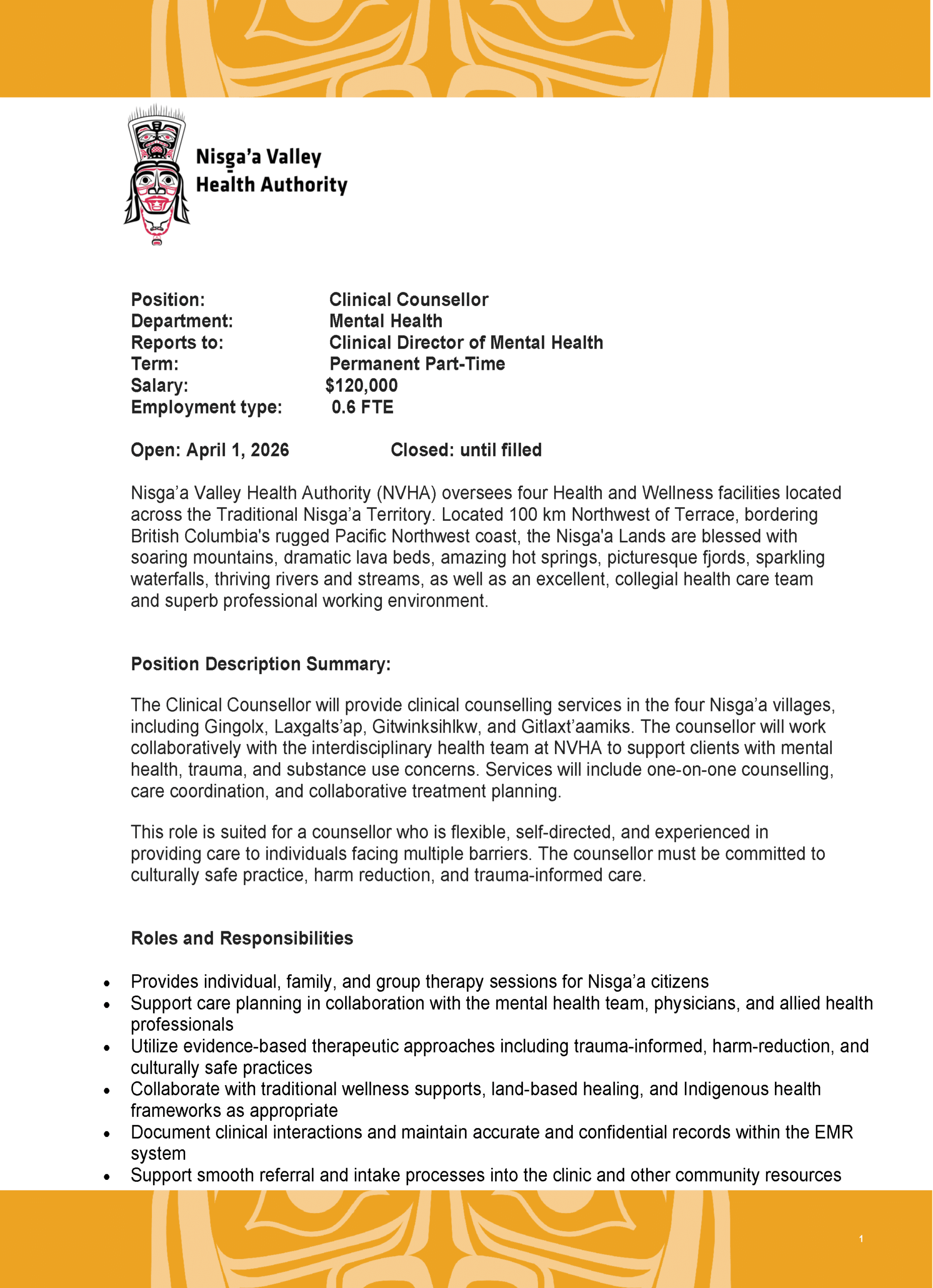 Employment Opportunity: Mental Health Clinical Counsellor